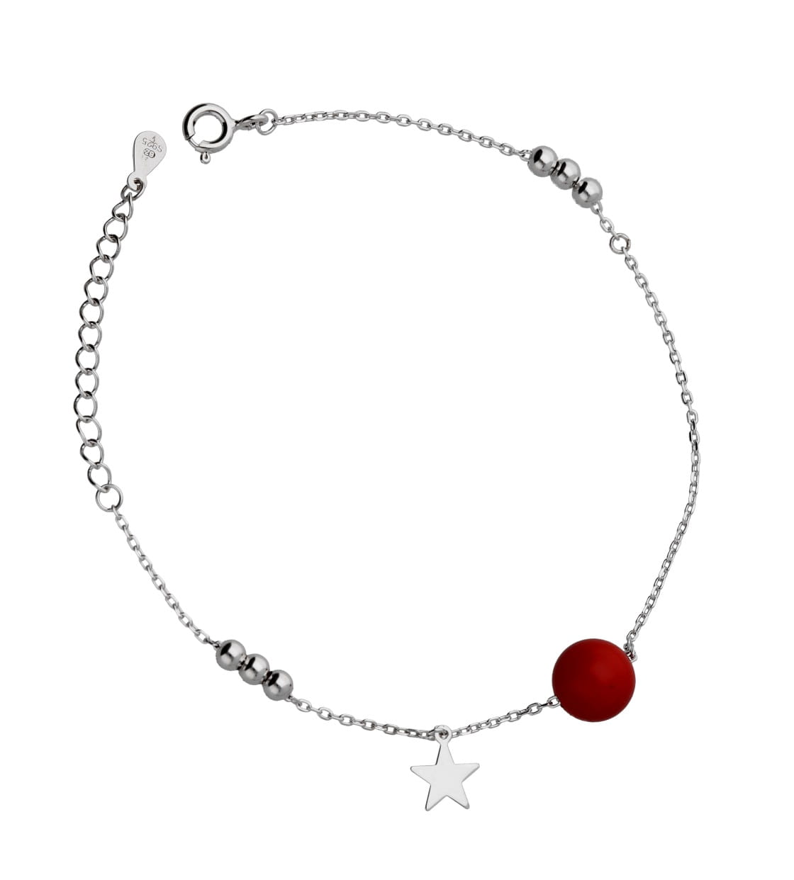Bransoletka srebrna z wiszącą gwiazdą i czerwoną kulką