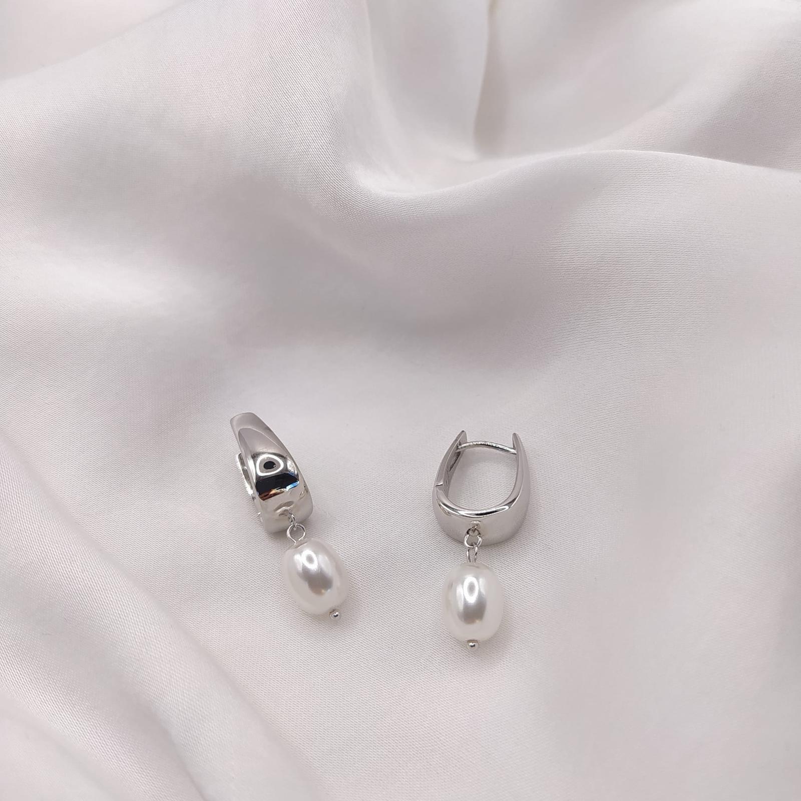 Podkreśl swoją subtelną elegancję tymi unikatowymi, półokrągłymi kolczykami. Wykonane z najwyższej jakości srebra próby 925, kolczyki te charakteryzują się nowoczesnym designem, w którym delikatny półokrągły kształt harmonijnie łączy się z naturalnym pięknem owalnej perły. Wisząca, owalna perła dodaje kolczykom lekkości i gracji, przyciągając wzrok swoim subtelnym blaskiem. Wygodne zapięcie na sztyft z zatyczką zapewnia komfort noszenia przez cały dzień. Te delikatne kolczyki to idealny sposób na dodanie wyrafinowanego akcentu zarówno codziennym, jak i bardziej eleganckim stylizacjom. Stanowią również doskonały prezent dla kobiety, która ceni sobie subtelną i nowoczesną biżute