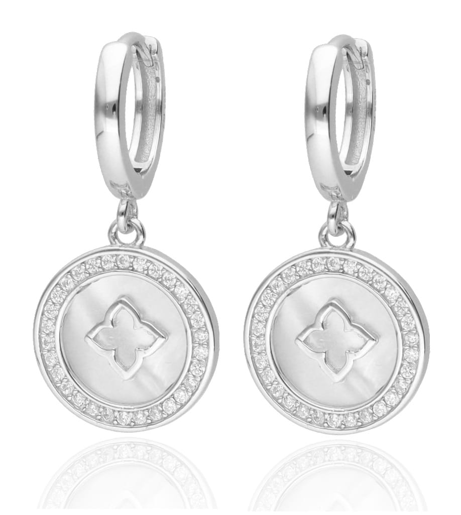 Kolczyki srebrne koła z masą perłową i cyrkoniami