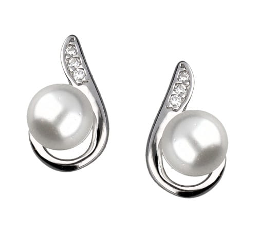 Kolczyki srebrne perły z listkiem i cyrkoniami