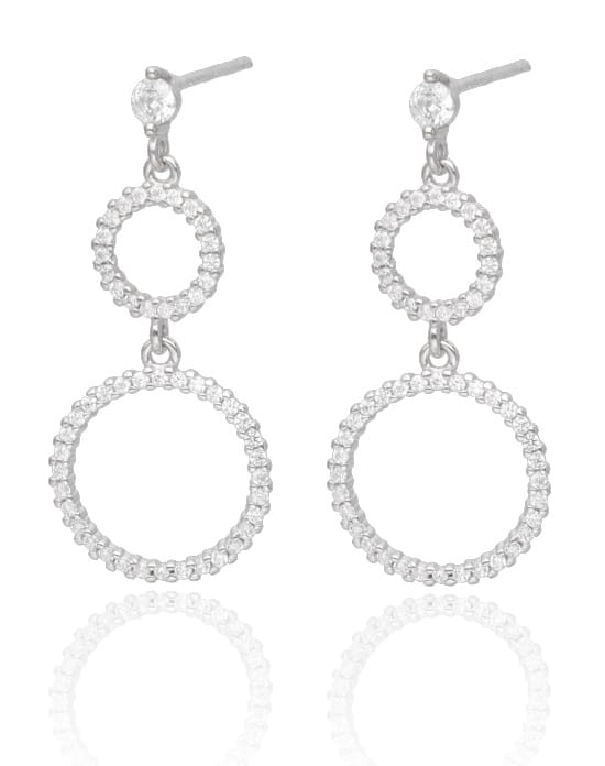 Kolczyki srebrne podwójne koła z cyrkoniami
