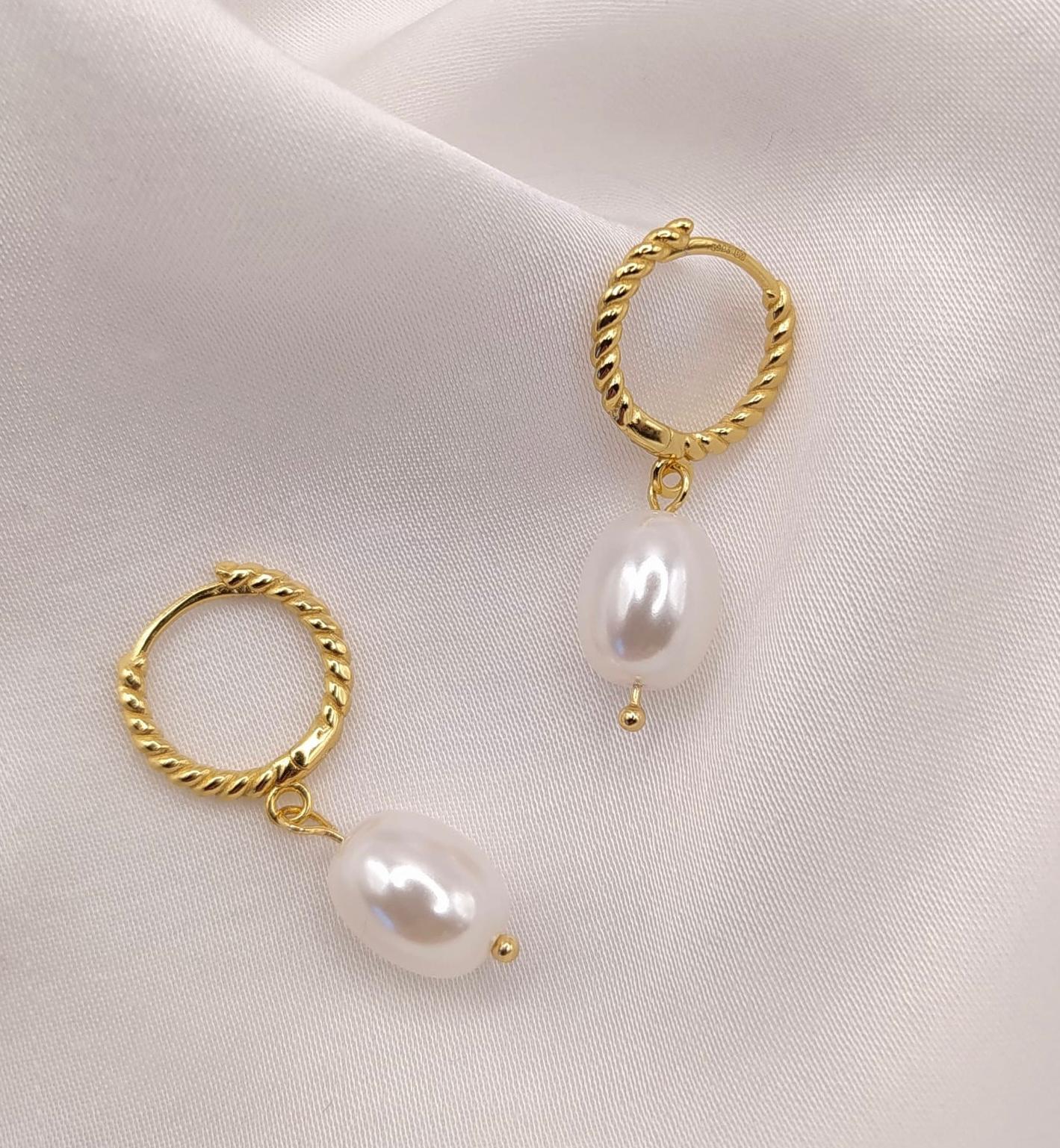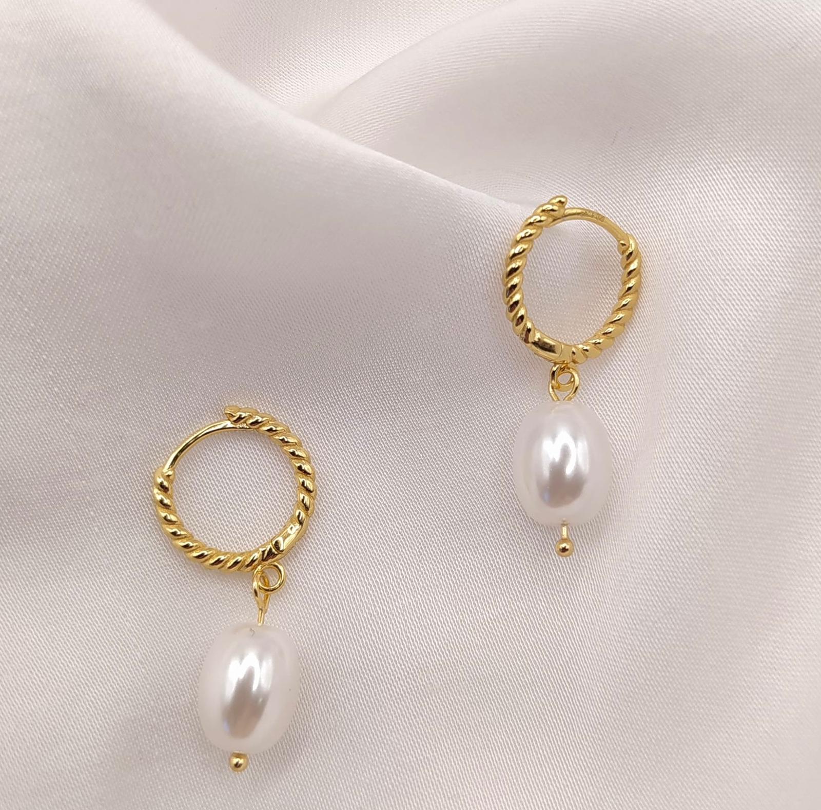 Pozłacane kolczyki koła z delikatnie skręconą strukturą i perłowym akcentem to idealne połączenie klasyki z nowoczesnym wykończeniem. Ich lekko falująca powierzchnia pięknie odbija światło, dodając całości subtelnego blasku, a zawieszona perła wprowadza nutę elegancji i finezji. Złocona powłoka nadaje kolczykom ciepły, luksusowy wygląd, który doskonale komponuje się zarówno z codziennymi, jak i wieczorowymi stylizacjami. To wyjątkowy model dla kobiet, które cenią wyrafinowaną biżuterię o ponadczasowym charakterze. Idealny wybór na prezent – symbol elegancji, dobrego smaku i wyjątkowego stylu.