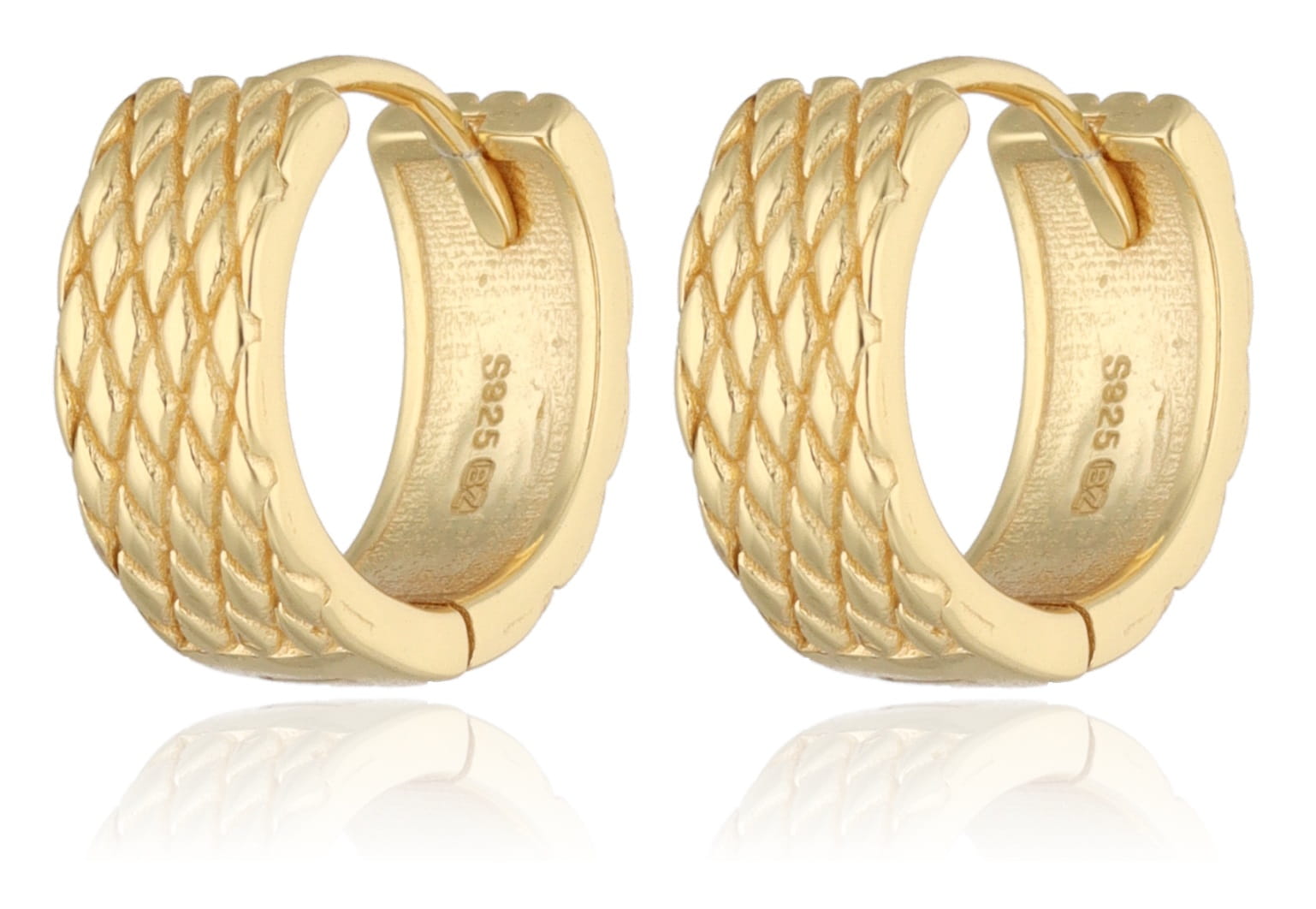 Złote kolczyki w formie klasycznych kół z dekoracyjnymi nacięciami to ponadczasowy dodatek, który wnosi do każdej stylizacji nutę elegancji i subtelnego blasku. Ich minimalistyczna forma została przełamana regularnymi zdobieniami w postaci precyzyjnych nacieć, które tworzą geometryczny wzór, przypominający romby, nadając kolczykom głębi i unikalnego charakteru. Pokryte ciepłym odcieniem złota, pięknie odbijają światło i przyciągają spojrzenia.