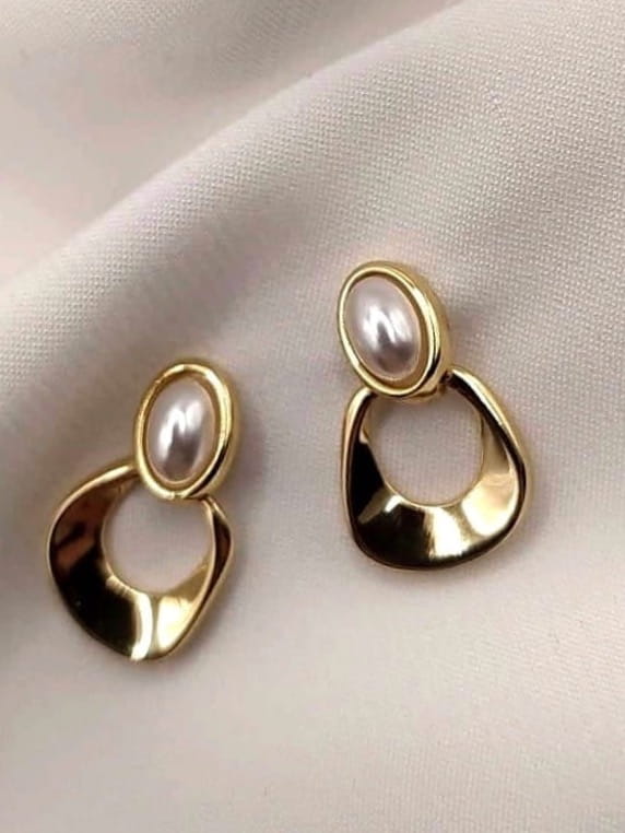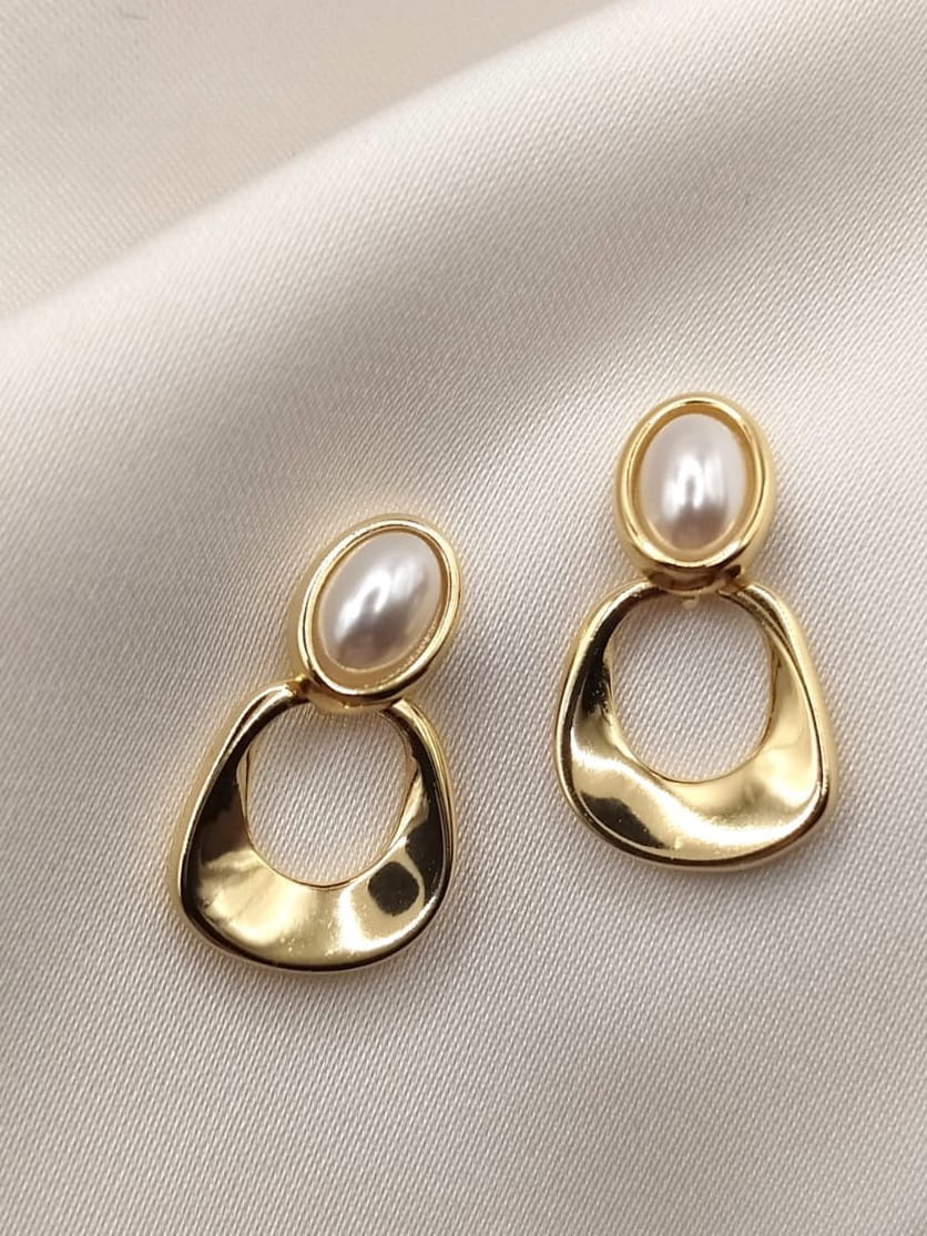 Kolczyki srebrne pozłacane perły owalne z geometrycznym elementem