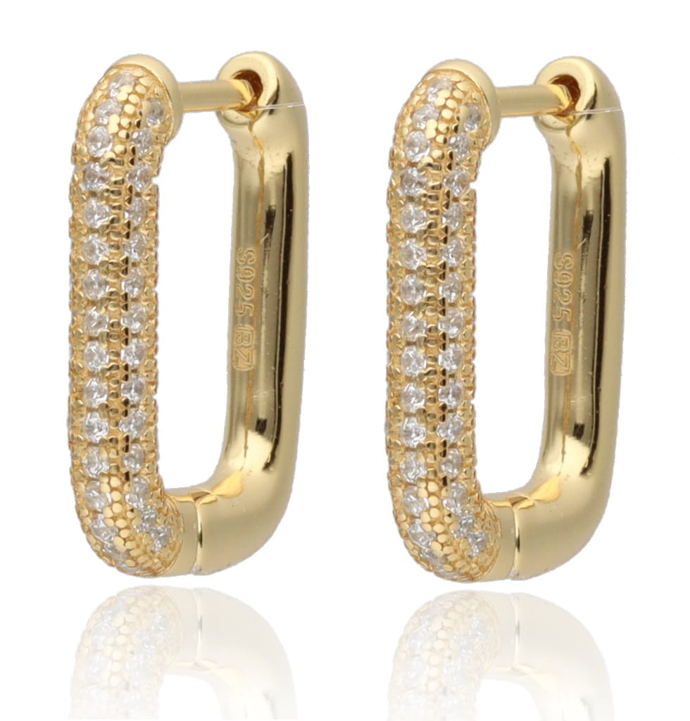Kolczyki srebrne pozłacane prostokątne z cyrkoniami