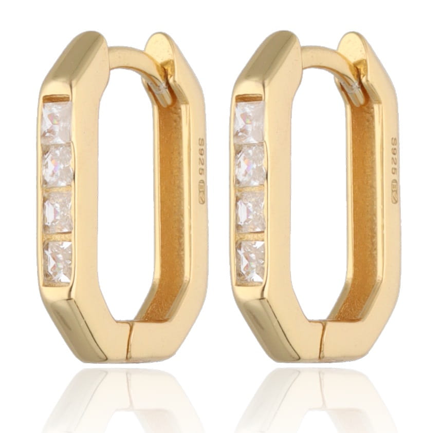 Kolczyki srebrne pozłacane prostokąty z cyrkoniami 1.5 cm