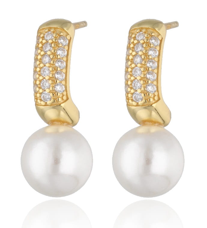 Kolczyki srebrne pozłacane z perłami i cyrkoniami