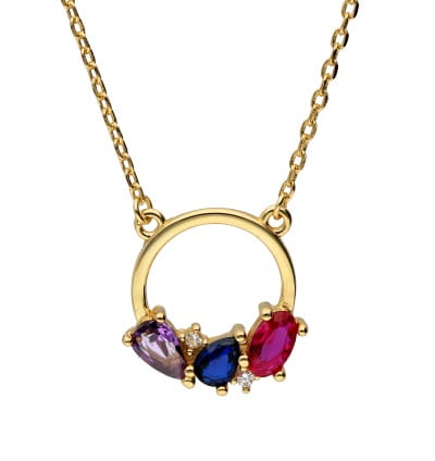 Naszyjnik srebrny pozłacany koło z kolorowymi cyrkoniami