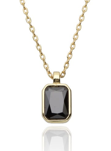 Naszyjnik srebrny pozłacany prostokąt z czarną cyrkonią