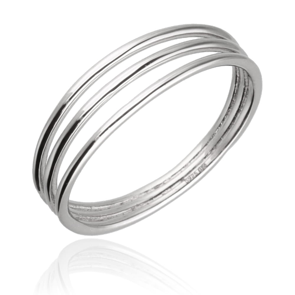 Każda z obrączek została starannie wypolerowana, co nadaje całości piękny, lustrzany połysk i podkreśla szlachetność srebra próby 925. Subtelna szerokość sprawia, że pierścionek świetnie sprawdzi się jako codzienny dodatek, a jego uniwersalna forma łatwo komponuje się zarówno z casualowymi, jak i bardziej eleganckimi stylizacjami. To idealny wybór dla kobiet ceniących delikatność i nowoczesny minimalizm w biżuterii.
