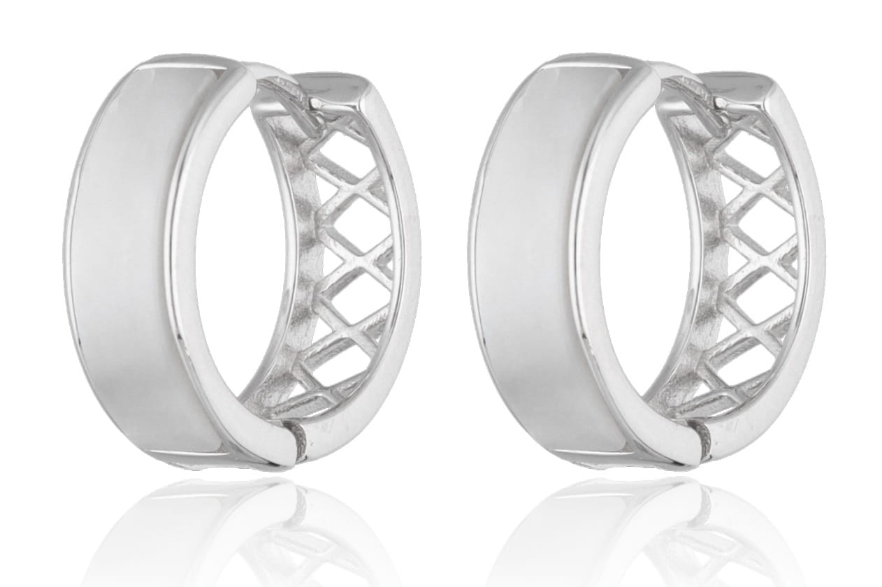Srebrne kolczyki koła z masą perłową to wyjątkowe połączenie subtelnego blasku i oryginalnego wzornictwa. Jedna strona lśni klasyczną perłą, natomiast druga zaskakuje ażurowymi wycięciami w geometryczne kształty rombów i trójkątów, tworząc efekt zmienności i głębi. To kolczyki idealne dla kobiet, które cenią sobie nietuzinkową biżuterię – stylową, ale też zaskakującą formą. Doskonale sprawdzą się jako prezent dla mamy, siostry, żony czy przyjaciółki – każdej miłośniczki elegancji z nowoczesnym twistem i zamiłowaniem do detali z duszą.