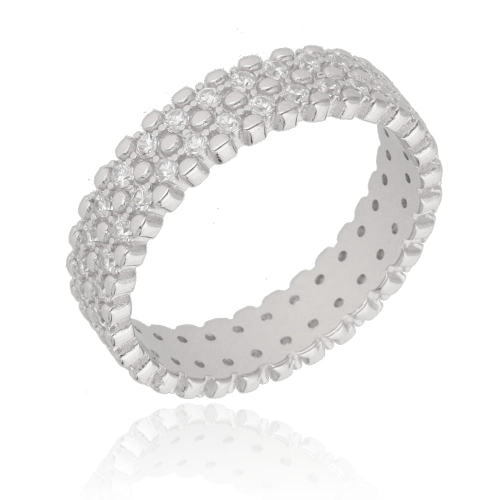 • Materiał: Srebro próby 925, rodowane • Kształt: Obrączka szer.0,5 cm • Element ozdobny: Cyrkonie na całej powierzchni • Wykończenie: Połysk • Styl: Elegancki, klasyczny, ponadczasowy • Waga: 4,0 g